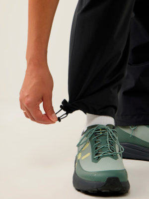 15 000 mm vesipilari pitää kosteuden ulkona myös sateisissa olosuhteissa, ja 15 000 g/m²/24h hengittävyys auttaa siirtämään kosteutta pois iholta aktiivisessa liikkeessä. Muotoillut polvet parantavat liikkumisvapautta vaativassa maastossa, ja säädettävät lahkeensuut mahdollistavat hyvän istuvuuden vaelluskenkien kanssa.