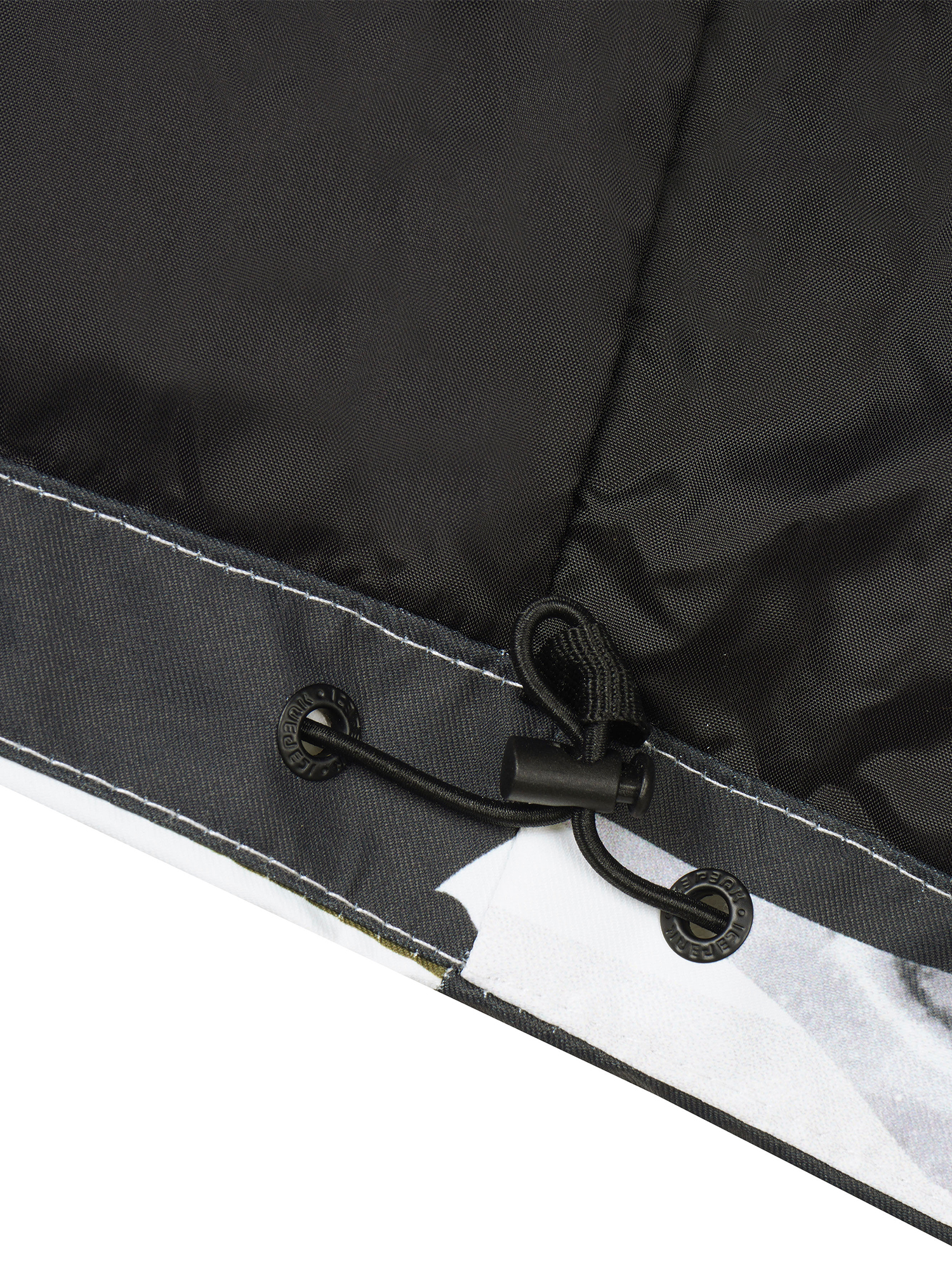 - Kiinteä, kypärän kanssa yhteensopiva huppu kahdella säädöllä