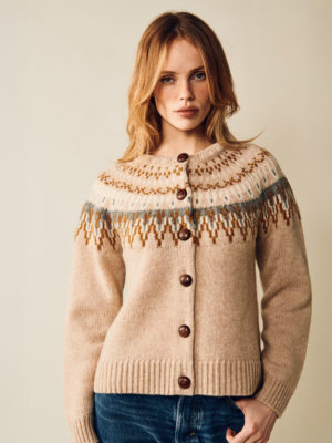 Ihastuttava Jumperfabriken Joelle on 100 % villasta valmistettu neuletakki, jossa on perinteinen kaarrokekuvio ja puiset napit. Suora, lyhyt ja väljä malli on täydellinen kerrospukeutumiseen viileinä päivinä.
